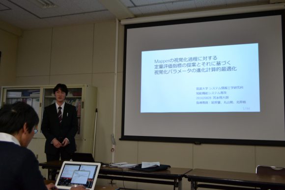 2017年1月29日、30日の2日間にわたり、計算知能・マルチメディア研究室のM2メンバ 7名が修士論文の発表を行いました。