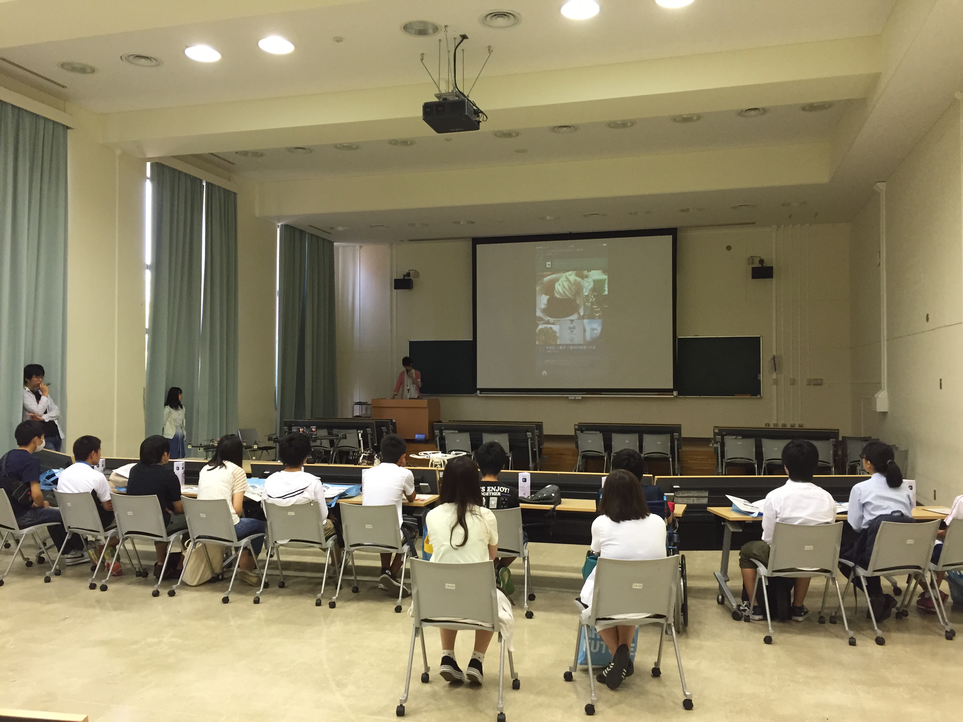 On August 3rd, 2015, Annual summer event, university introduction was held. System engineering is very popular, since there was about 600 participant. Computational Intelligence and multimedia laboratory, as usual, we would like to take a large classroom, 3A202, to demonstrate the drone flight and the introduction of iPhone apps being developed in collaboration with other companies. Thank you a lot for your visit!