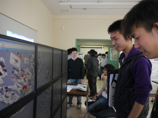 イベント紹介 (研究室の歴史) 16面ディスプレイ構築に向けて準備中 2012年1月31日,小林君が基本設計してくれた16面ディスプレイのアルミフレームパーツが到着しました.試しに小林君の方で1部組み立て中....
