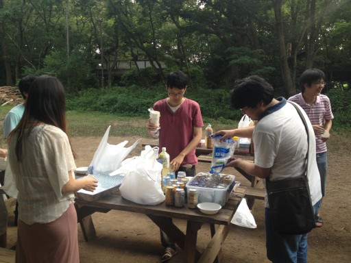 2013年7月22日,春学期最後の全体ミーティングの後,「納涼会」として夕方から筑波大学にある野性の森にてバーベキューを行いました.いつもの屋内の飲み会と異なり,屋外で炭火で食べる肉,野菜,やきそば,その他(?)の味は格別でした.この日の納涼会は,大学院入試合格のお祝い,そして,新しくやってくる予定の中国の留学生の歓迎会も兼ねておりました.準備に奔走してくれたメンバ,本当にありがとう!非常に充実した夏の1日でした.