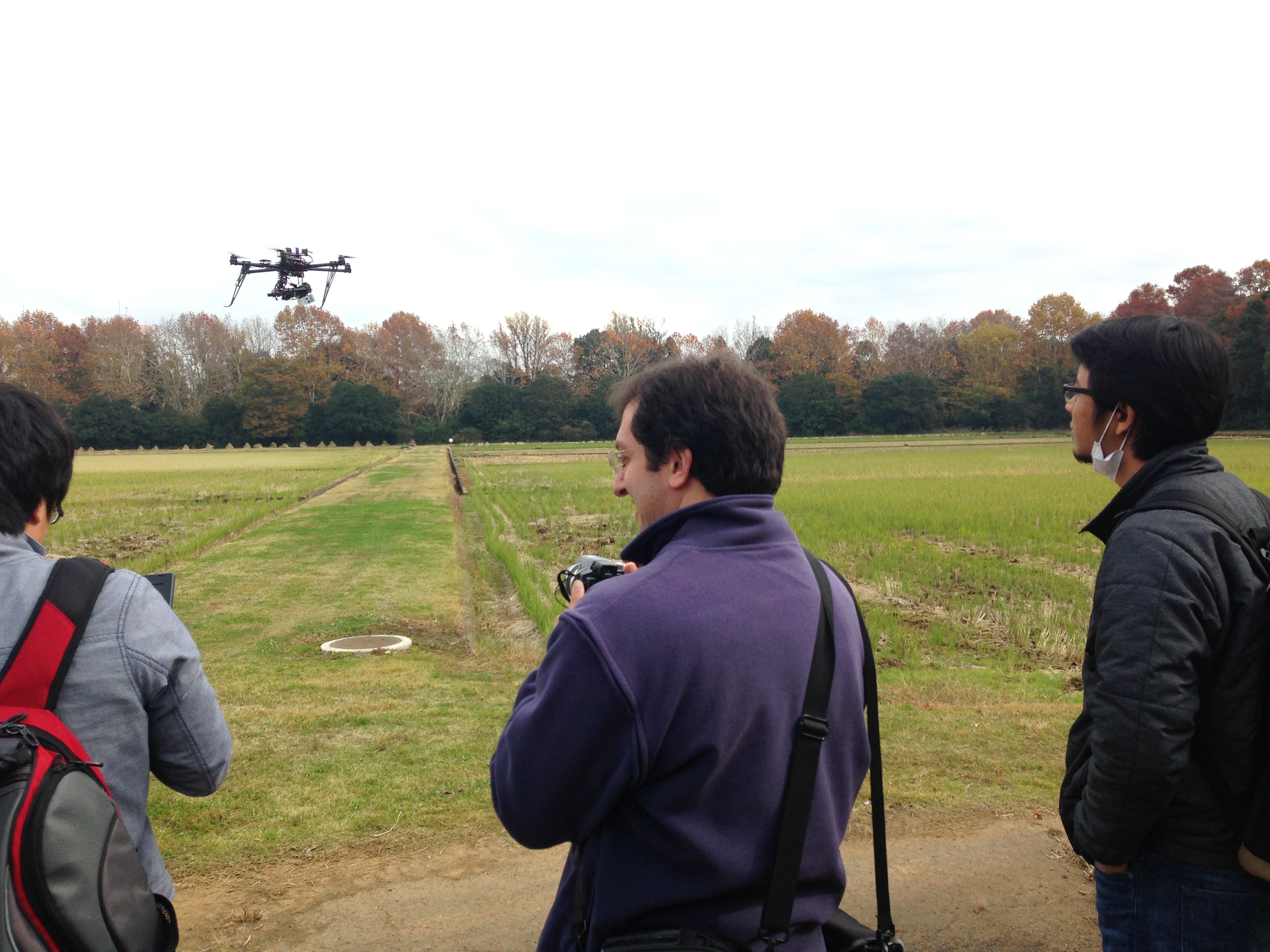 2014年11月17日、ウルグアイから日本の最新の農業技術を視察するため、Fernando Rivas博士がいらっしゃいました。加藤盛夫先生のご高配で、筑波大学農林技術センターを見学いただくとともに、いつも我々の方で行っているマルチコプターによる水田の撮影のデモフライトもご覧いただきました。今後、ウルグアイとのコラボレーションが増えると嬉しい限りです。