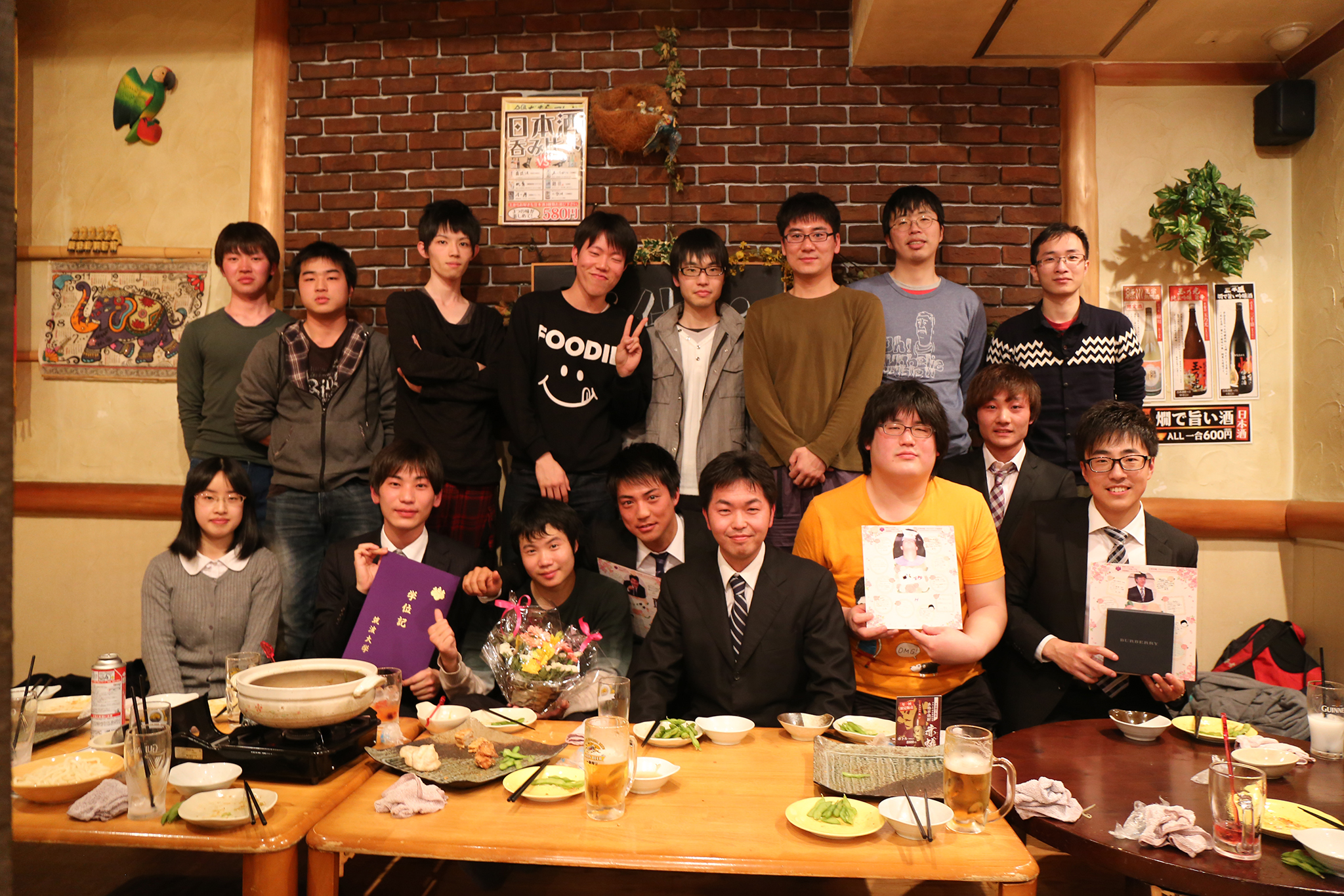 今年も、この季節がやってきました・・・寂しい限りですが、2014年3月25日、2014年度計算知能・マルチメディア研究室の追い出しコンパが開催されました。今回は、おそらく初めての利用になると思うのですが、「なごみ処きりん」。とても素敵なお店で、かつ、お料理も良いお店でした!とりまとめてくれた鋤先君どうもありがとう!